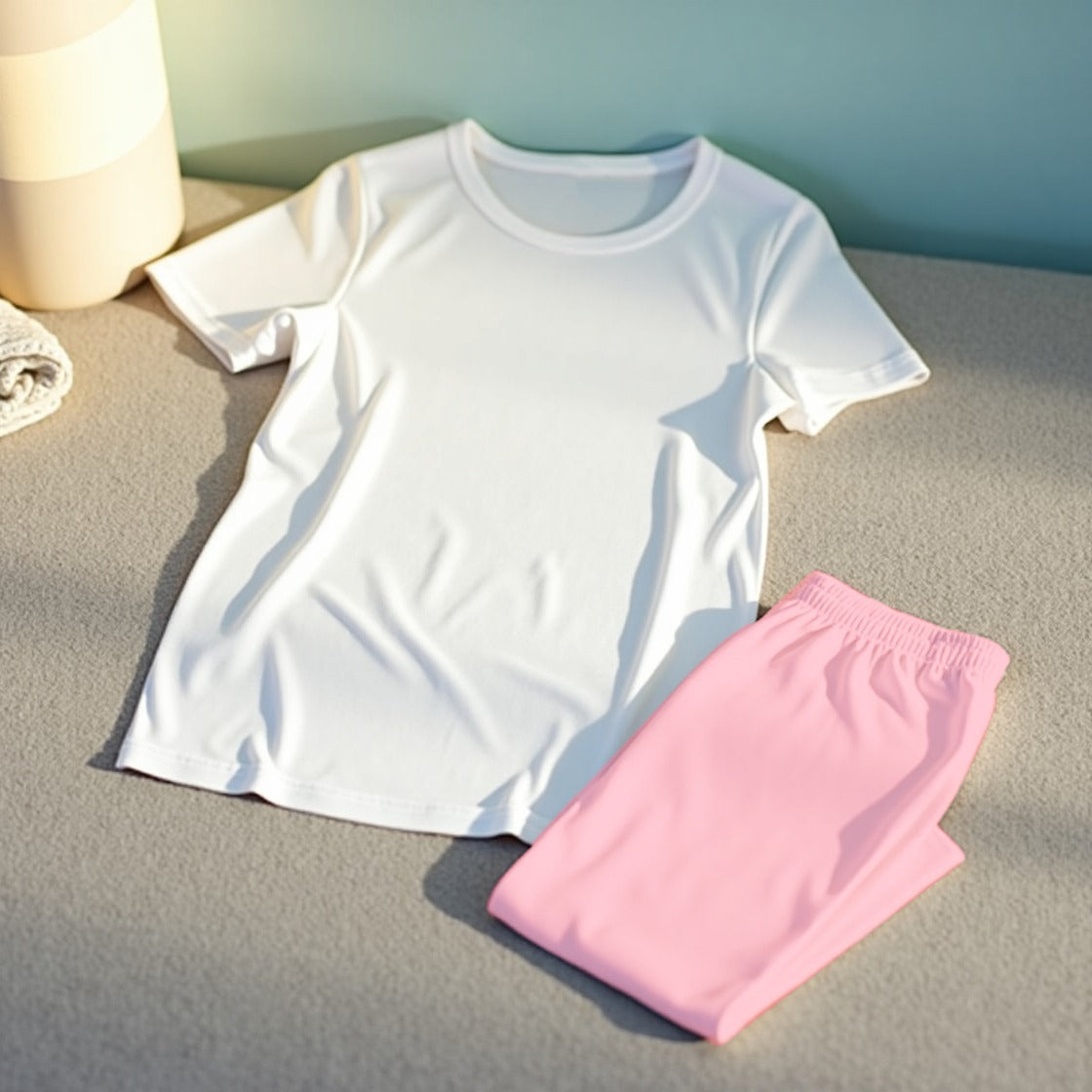 pink and white drop shoulder woman night suit